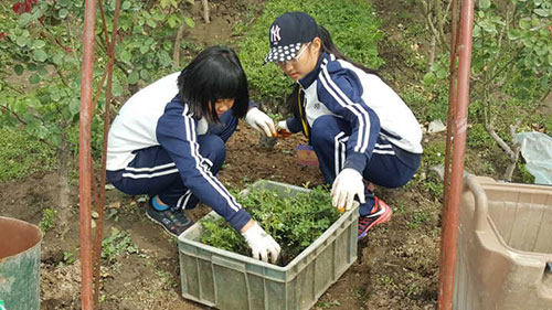 花儿美丽,离不开精心培育。在聆听了实验中心科研人员关于树状月季的科普讲座后,接下来,学生们接到了此次活动的重头任务——栽植月季接穗。