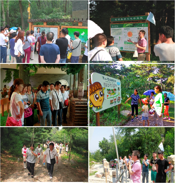 培训会采取理论联系实际、动静结合的形式,将培训分为室内讲座与室外体验两个部分。其中,室内培训内容主要包括:北京自然体验教育探索与实践、自然体验教育实践案例、自然体验教育国内外解说系统、森林疗养基地规划等。室外体验地点分别是百望山森林公园、西山国家森林公园、松山自然保护区和八达岭国家森林公园的森林文化示范区。这四个示范区各具特色,其中,百望山森林公园以自然教育、历史遗存为主,西山国家森林公园以自然观察、森林健身及休闲娱乐为主,松山国家级自然保护区以生态教育、森林疗养为主,八达岭国家森林公园以历史挖掘、森林大课堂为主。