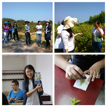 上午,康耘老师带大家在室外以彩叶扦插为例进行社会大课堂课程设计。学员在“藏宝”、“寻宝”和分享的过程中思考体会如何有效利用当地现有资源和场地、如何通过简单的游戏让学生学习到知识。轻松的体验环节启发了思维、开阔了思路,受到大家一致好评。在室外环节中采集到植物叶片回到室内进行植物敲染,为学员们打开了手工创作的大门。