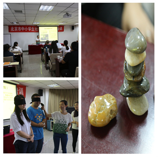 下午,康老师继续自然教育理论部分的培训,主要从社会大课堂需求及森林主题资源分析和自然教育活动中的流水学习法两方面进行深入浅出的讲解。通过蒙眼摸自然物和搭石头塔,康耘老师将枯燥的理论学习和有趣的互动相连结,结合上午的实践体验,学员们对于理论有了更深刻的理解和体会。