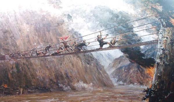 “红军不怕远征难,万水千山只等闲。五岭逶迤腾细浪,乌蒙磅礴走泥丸。金沙水拍云崖暖,大渡桥横铁索寒。更喜岷山千里雪,三军过后尽开颜。”毛泽东的诗篇描述了长征路上千难险阻,饱含着中国共产党的万般豪情壮志。