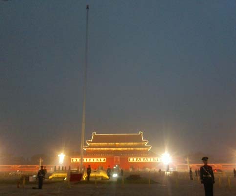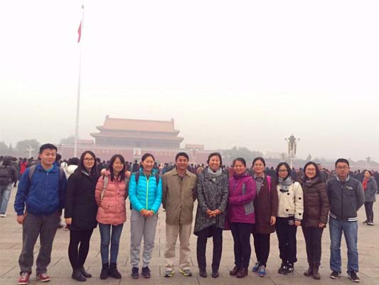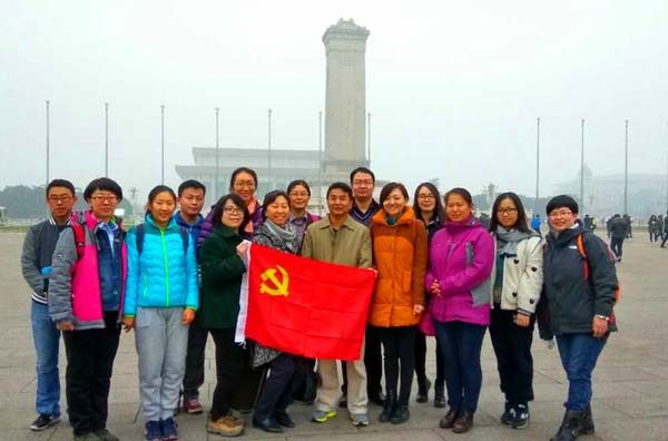 带着长征精神激发出的热情,我们踏上了自己的“微型长征”路。伴随着淅淅沥沥的小雨,克服了雾霾的影响,本着“一个都不能少”的团队精神,18名同志步行2.5公里来到天安门广场。