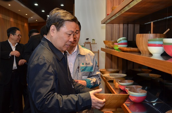 中国林学会副理事长兼秘书长陈幸良陪同尚勇书记参观学会宁波服务站创新驱动示范试验点-宁波士林工艺品有限公司