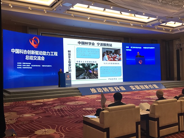 2017年4月13-14日,中国科协创新驱动助力工程总结交流会在浙江省宁波市举行。会议旨在落实习近平总书记在“科技三会”上的重要讲话精神,围绕实施创新驱动发展战略,总结中国科协创新驱动助力工程工作新做法,交流新经验,推广新模式,取得新实效,深入谋划创新驱动助力工程的未来发展方向,打造“创新驱动助力工程”2.0版。中国林学会副理事长兼秘书长陈幸良作为全国学会的代表,在大会上作了题为《探索创新助力新模式 服务生态建设和产业发展》的经验交流发言。