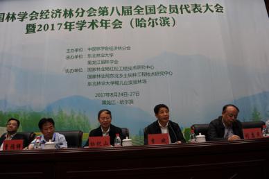 2017年8月24-27日,中国林学会经济林分会第八届全国会员代表大会暨2017年学术年会在东北林业大学隆重召开,来自全国90多家单位的300余名代表参加会议。中国林学会经济林分会第七届委员会主任委员曹福祥,国家林业局科学技术司副司长杜纪山,东北林业大学校长李斌,黑龙江省林业厅厅长杨国亭,云南省人大教育委员会副主任、西南林业大学原校长刘惠民,中南林业科技大学副校长王忠伟,中国林科院林业研究所所长张建国,国家林业局造林绿化司经济林和花卉管理处处长周力军,中国林学会学术部主任曾祥谓等领导和专家出席大会,会议开幕式由中国林学会经济林分会常务副主任委员谭晓风主持。
