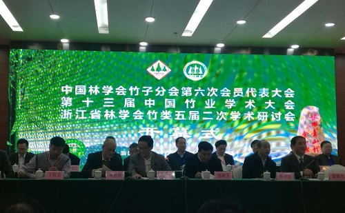 2017年11月20日至11月22日,中国林学会竹子分会第六次代表大会暨第十三届中国竹业学术大会在浙江省安吉县召开。会议由中国林学会、浙江省林业厅主办,中国林学会竹子分会、安吉县人民政府、浙江省竹产业协会等单位所共同承办。第十八届中央委员、全国绿化委员会副主任、中国林学会理事长赵树丛出席会议并讲话。中国林学会副理事长兼秘书长陈幸良,浙江省林业厅厅长林云举,中国林学会竹子分会副主任委员兼秘书长傅懋毅、中国林学会竹子分会副主任委员蓝晓光、王浩杰、丁雨龙、王玉魁、方伟、郑郁善、汪奎宏、陈其兵、金爱武、董文渊等有关领导和专家出席会议。来自国家林业局、浙江省林业厅、中国林科院、国际竹藤中心、南京林业大学、北京林业大学等各大专院校和科研机构、全国19个省(市、区)的会议代表、特邀嘉宾、媒体记者等共计450余人参加了会议。