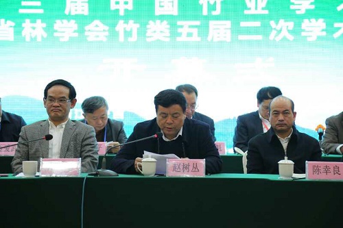 赵树丛理事长在讲话中指出,竹子分会成立20多年来,汇聚全国竹业界科技管理生产经营学者,通过学术交流、成果展示、经验介绍、实践实训、对外合作、培养青年等方面的努力,为中国竹业发展做出了卓越贡献,在中国林学会40多个分会和专业委员会中,竹子分会的活动非常活跃,受到了竹子科技工作者,竹子从业者和党委政府的广泛好评。