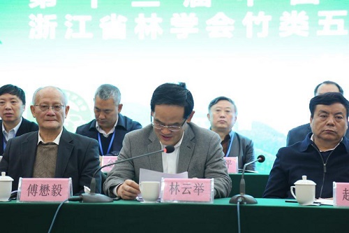 林云举厅长在讲话中指出,浙江省林业厅作为主任委员单位,历届厅领导班子非常重视竹子分会的工作,从人力、财力等多方面积极支持分会的各项活动,并利用竹子分会这个平台,积极协助南方各兄弟省市区发展竹产业,促进地方经济的发展。这次学术大会的主题是践行“两山”理论,服务精准扶贫,促进竹业科技创新与产业升级,主题非常切合实际和现实需要。2005月8月15日习近平同志在安吉首次提出了“绿水青山就是金山银山”的重要思想,可以说安吉是践行“两山”理论的第一块样板地。而安吉余村的样板地又与竹产业密切相关。党的十九大吹响了全面建设小康社会的进攻号角,竹子可在中西部地区的精准扶贫攻坚战中发挥重要作用。