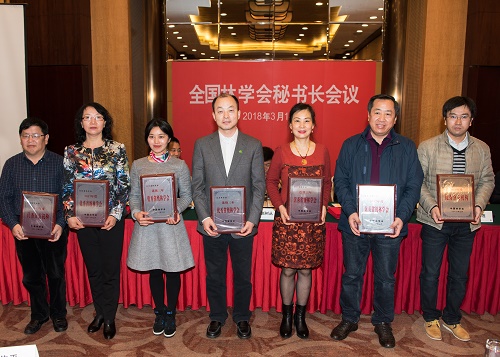 刘合胜副秘书长在会上宣读了《中国林学会关于2017年度评优结果的通报》,山西省林学会、吉林省林学会、江西省林学会被评为2017年度“优秀省级学会”。北京林学会、浙江省林学会、四川省林学会连续三年被评为“优秀省级学会”。森林培育分会被评为2017年度“优秀分支机构”; 宁波服务站、森林经理分会、林下经济分会继续保持“优秀分支机构”称号。辽宁省林学会等14个单位被评为2017年度学术交流工作先进单位,黑龙江省林学会等8个单位被评为2017年度科学普及工作先进单位,内蒙古林学会等5个单位被评为2017年度咨询服务工作先进单位,甘肃省林学会等4个单位被评为2017年度国际交流工作先进单位,上海市林学会等5个单位被评为2017年度组织建设工作先进单位。