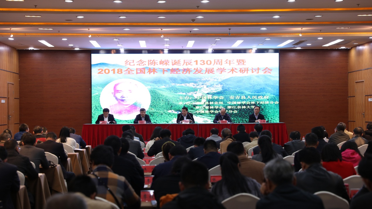 2018年3月24日,2018全国林下经济学术研讨会在浙江省安吉县召开。全国绿化委员会副主任、中国林学会理事长赵树丛,中国林学会副理事长兼秘书长陈幸良,国家林业局农村林业改革发展司巡视员刘家顺,浙江省林业厅巡视员、浙江省林学会理事长吴鸿,安吉县委副书记赵德清,以及来自全国从事林下经济研究、管理、生产实践200余人参加会议。