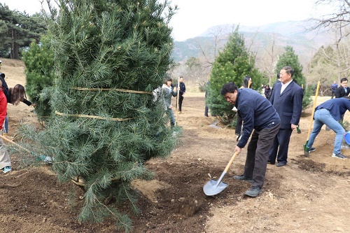 本次植树活动种植的白皮松树苗由陕西蓝田县人民政府捐赠,蓝田白皮松为中国地理标志保护产品。蓝田境内拥有中国最大的天然白皮松连片纯林3万余亩,是中国最大的天然白皮松原产地和白皮松交易市场,被誉为白皮松之乡。