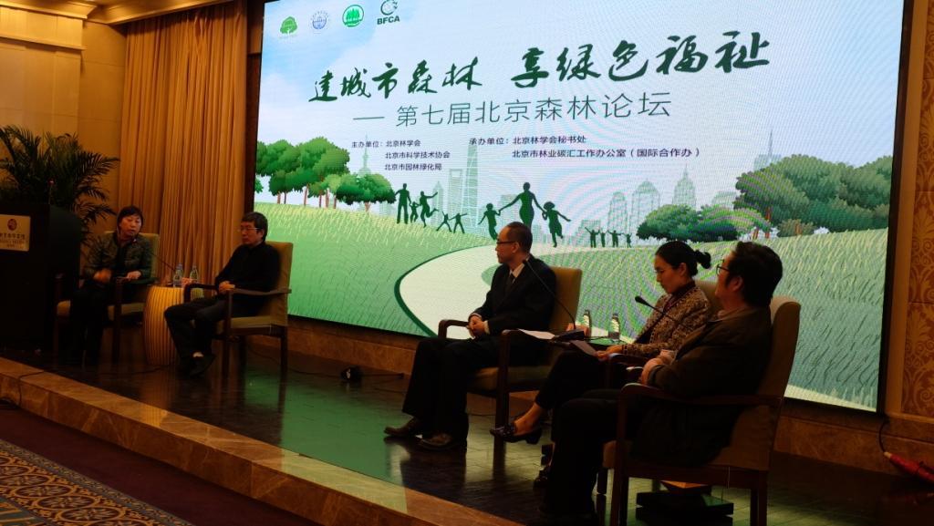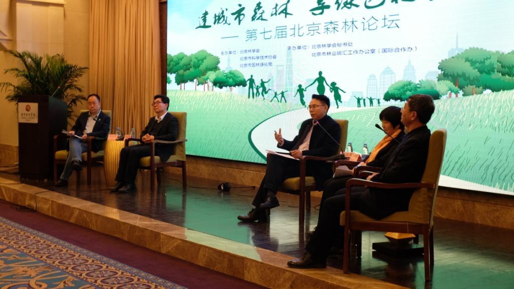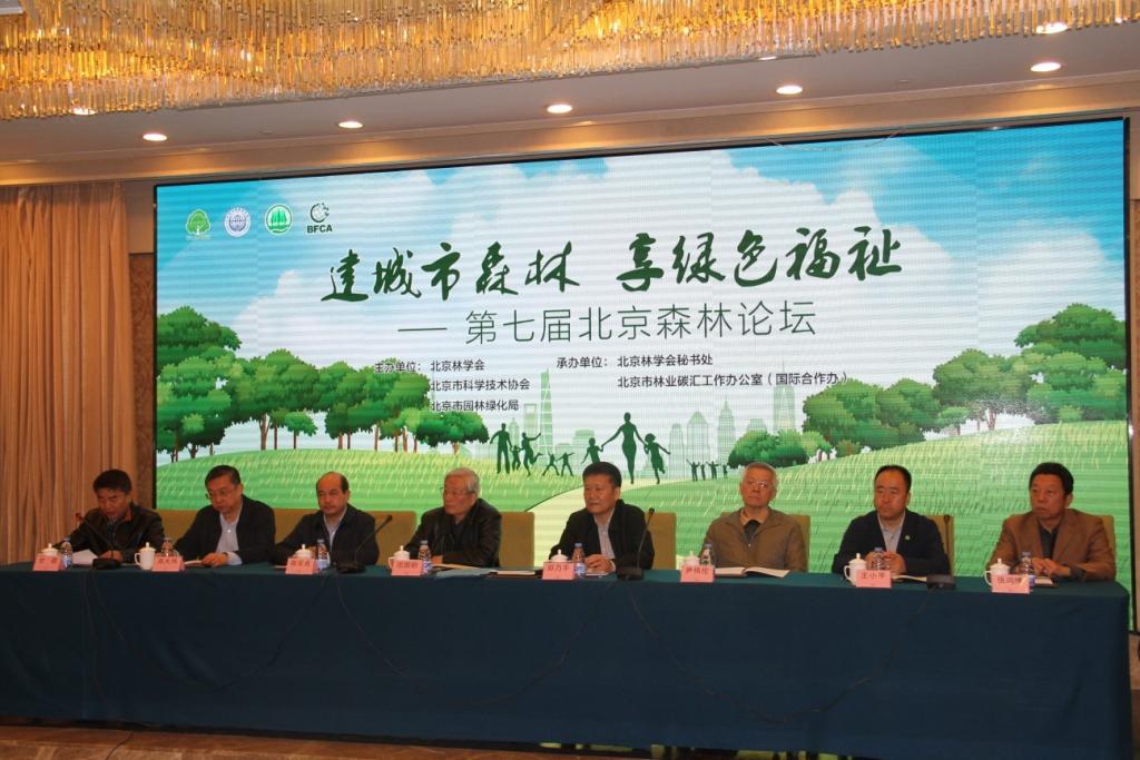 2018年4月8日,由北京林学会、北京市科学技术协会、北京市园林绿化局主办,北京林学会秘书处、北京市林业碳汇工作办公室(国际合作办)承办的第七届北京森林论坛在京举行。北京市园林绿化局局长邓乃平、中国林学会副理事长陈幸良等出席开幕式并讲话,北京林学会常务副理事长甘敬主持开幕式。北京林学会第四届理事会理事长、中国工程院原副院长沈国舫院士,北京林学会理事长、中国工程院尹伟伦院士、北京市园林绿化局副局长高大伟作主旨报告。来自市园林绿化相关部门、科研机构、企业和国际机构代表共计140余人参加了此次论坛。
