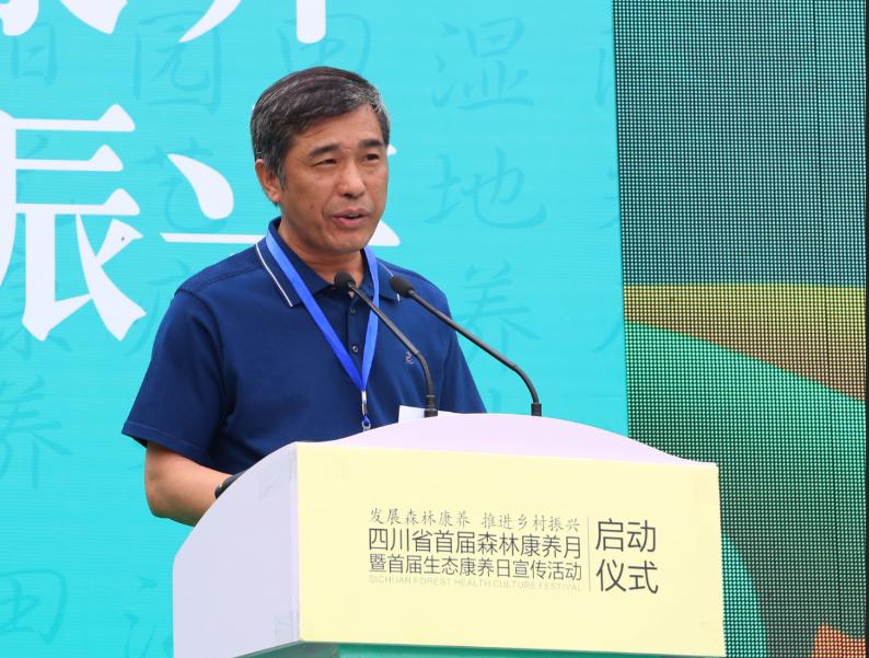 刘合胜在讲话中指出,四川地处长江上游,区位十分重要,发展森林康养得天独厚。近年来,四川省认真践行“绿水青山就是金山银山”的理念,在推进生态保护、促进绿色发展上做了许多积极探索,在推广森林康养理念推进森林康养发展方面走在全国前列。四川省林学会的工作积极进取,开拓创新,成立了全国第一个地方性的森林康养专业组织,为森林康养学术研究和产业发展发挥了重要的支撑和引领作用。希望四川首届森林康养月暨生态康养日圆满成功,希望省林学会发扬成绩、再接再厉,为四川康养产业做大做强贡献力量。
