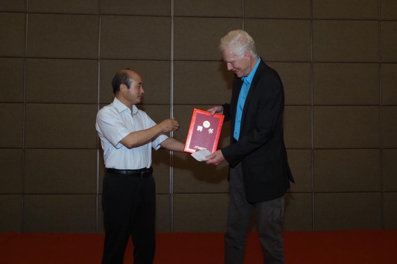 中国林学会副理事长兼秘书长陈幸良为Klaus von Gadow教授颁发聘书
