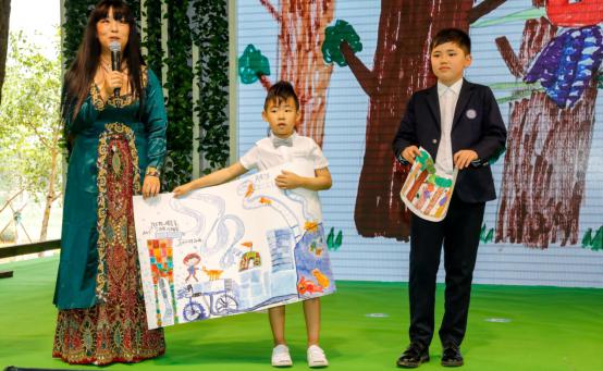 活动现场,“绘美家园”艺术家代表黄欢及两位小朋友将自己创作的绘画作品进行了现场展示与讲解,表达了自己渴望人类共同保护自然、保护环境的美好愿望。