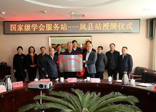 2018年10月17日,在山西省吕梁市岚县举行了“国家级学会服务站——岚县站”授牌仪式,中国林学会副理事长兼秘书长陈幸良代表中国林学会、山西省科协副主席郝建新代表山西省科协共同为岚县人民政府授牌“国家级学会服务站——岚县站”,标志着中国林学会正式在岚县成立了服务站,与地方政府联动,共建了新的服务平台。中国科协书记处书记、党组成员宋军,中国科协科技社团党委书记刘亚东,中国科协学会学术部部长刘兴平,中国科协计财部部长杨文志,中国科协农技中心副主任王诚,山西省吕梁市副市长尉文龙,山西科协副主席郝建新,岚县县委书记高奇英、县长乔云,山西省林学会秘书长李华等出席了授牌仪式。