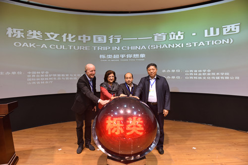 开幕式上,中国林学会副理事长兼秘书长陈幸良,山西省林业厅总规划师黄守孝,世界自然保护联盟教育与宣传专业委员会副主席Katalin Czippan和国际树木年轮研究协会主席、德国弗莱堡大学教授Heinrich Spiecker分别代表中国林学会、山西省林业厅、IUCN和IUFRO共同完成了“栎类文化中国行”的启动仪式。