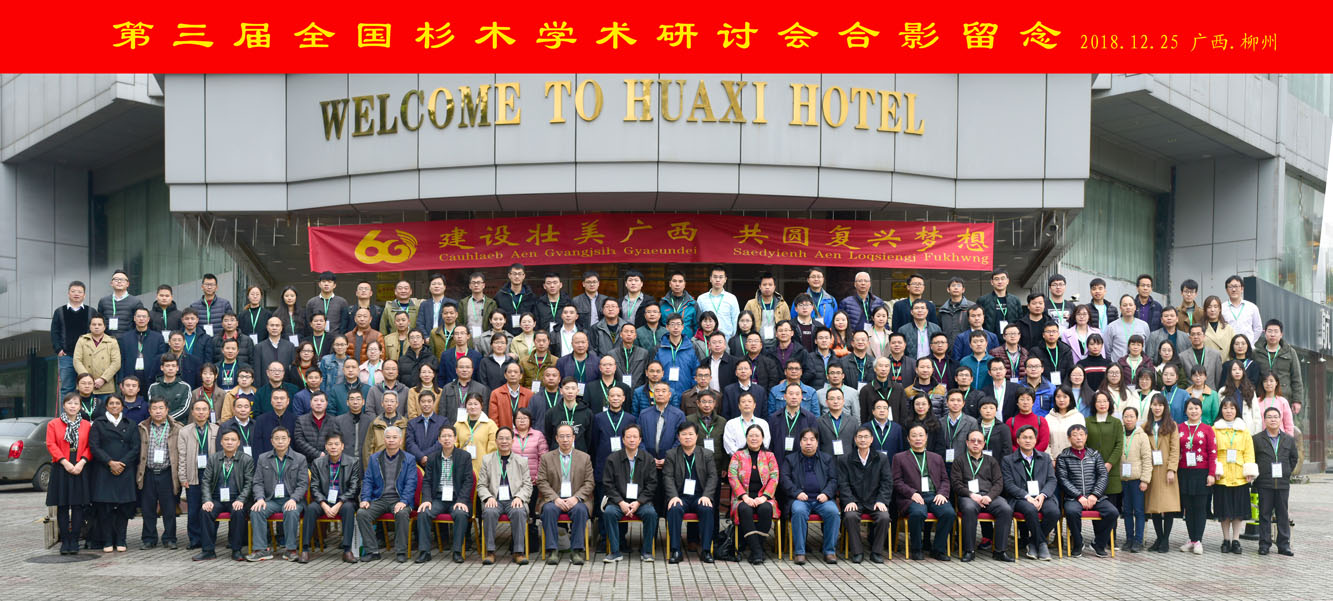 2018年12月24日—26日,第三届全国杉木学术研讨会在广西柳州召开。此次研讨会由中国林学会主办,中国林学会杉木专业委员会、广西壮族自治区林业科学研究院和广西壮族自治区林学会承办,广西华沃特生态肥业股份有限公司和广西壮象木业有限公司协办。广西壮族自治区林业局党组成员、自治区林业科学研究院院长安家成,中国林学会学术部副主任何英,广西壮族自治区林业局科技处处长韦达威、广西壮族自治区林学会理事长莫一平,柳州市林业局总工程师陆广潮等领导与嘉宾出席会议并讲话。会议开幕式由杉木专业委员会副主任委员马祥庆主持。中国林学会杉木专业委员会主任委员林思祖,副主任委员张建国、施季森、何贵平及各省、自治区、直辖市从事杉木研究的科技工作者、生产人员共187位代表参加会议。会议主题为杉木人工林质量精准提升技术。