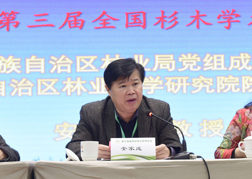 广西壮族自治区林业局党组成员、广西壮族自治区林业科学研究院院长安家成教授代表广西壮族自治区林业局及广西壮族自治区林业科学研究院向与会的杉木研究专家、学者表示热烈的欢迎并简要介绍了广西壮族自治区林业及广西壮族自治区林业科学研究院发展现况。