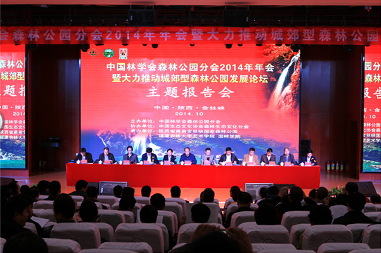 2014年10月29-31日,中国林学会森林公园分会2014年会在陕西金丝峡国家森林公园隆重召开。本次年会由中国林学会森林公园分会主办,陕西金丝峡国家森林公园和福建农林大学艺术学院、 园林学院联合承办,中国生态协会森林生态文化分会协办。中国林学会森林公园分会第三届理事会理事长、福建农林大学校长兰思仁,中国林学会森林公园分会第三届理事会副理事长、中国林学会副秘书长沈贵,中国林学会森林公园分会第三届理事会副理事长、国家林业局森林公园管理办公室副主任杨连清,陕西省商洛市副市长李云飞等出席年会并讲话。中国林学会森林公园分会第三届理事会副理事长、国家林业局林产工业设计研究院党委书记李鹏出席了会议。