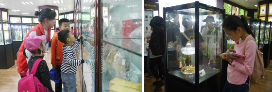 在浙江农林大学百草园,小朋友们了解了植物分类、辨认等相关知识,见识了“害羞”的含羞草,品尝了清凉的薄荷,感受了野菊花的清香,千奇百怪的植物大大刺激了小朋友的感官,感受到了大自然的神奇;在中药材标本馆,小朋友们见识了各种各样的中药材植物标本,了解了不同的中药材植物的药用价值;在茶文化基地,小朋友们背着小竹篓,在老师的带领下,体验茶农采茶的艰辛,一叶一芽细细采摘,来之不易。随后的茶叶审评教学,专业又极具趣味性的科普推介让孩子们深入了解到茶叶品鉴及茶产品原料把关的严苛与精准。