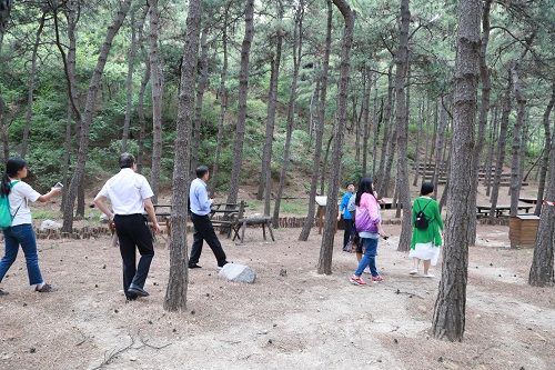 在园区调研活动中,党支部成员调研了森林疗养步道的规划、器材设施的建设、树种选育、就森林疗养菜单的选择,效果评估方法进行了探讨。