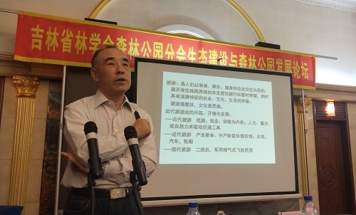 李俊清教授做“生态旅游的理论与实践”的主旨报告。他在报告中指出,生态旅游在我国已经逐渐成为人民生活的刚需,而且相对自然保护区、风景名胜区等具有独特的优势,既能实现可持续发展的需求,又能为协调、促进当地经济和社会的发展,具有无限的发展前景。此外,李俊清教授还重点阐述了生态旅游的发展趋势:一是根据需求打出品牌做好定位,二是再定位,处理好风貌特色化、功能现代化、服务标准化之间的关系,三是科学发展生态旅游,制定好“四划、三图、三权、四方”的规划流程。