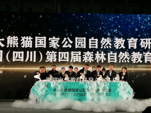 赵树丛理事长宣布首届大熊猫国家公园自然教育研讨会暨中国(四川)第四届森林自然教育大会开幕