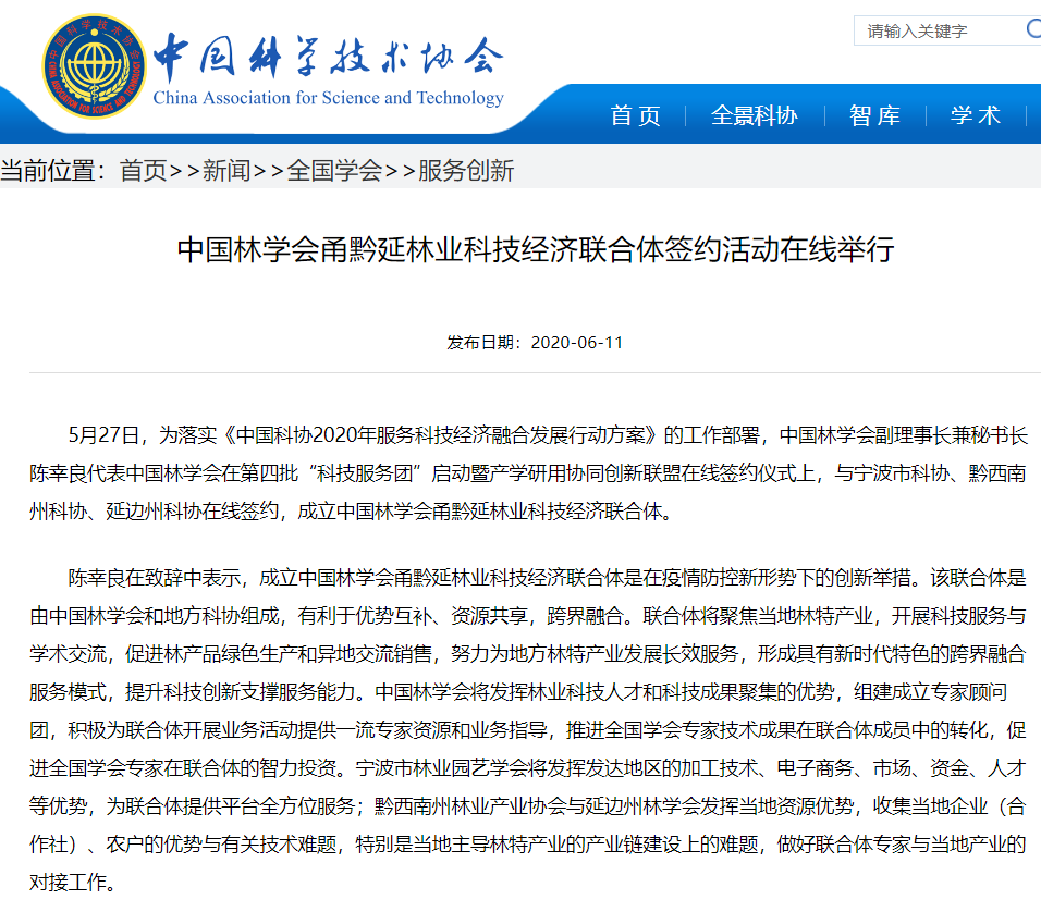 2020年中国林学会甬黔延林业科技经济联合体在线签约活动