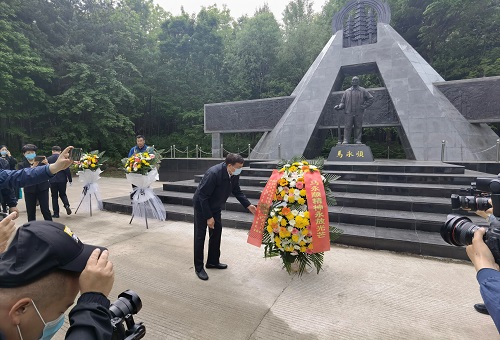 赵树丛理事长为马永顺塑像敬献花篮