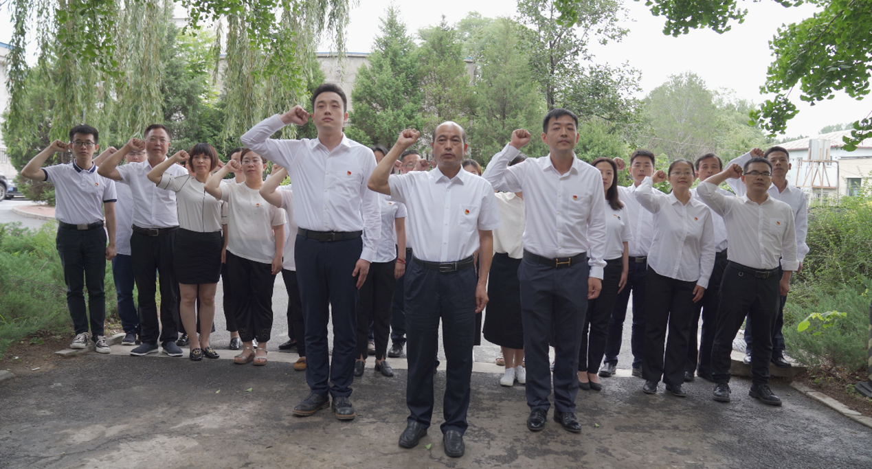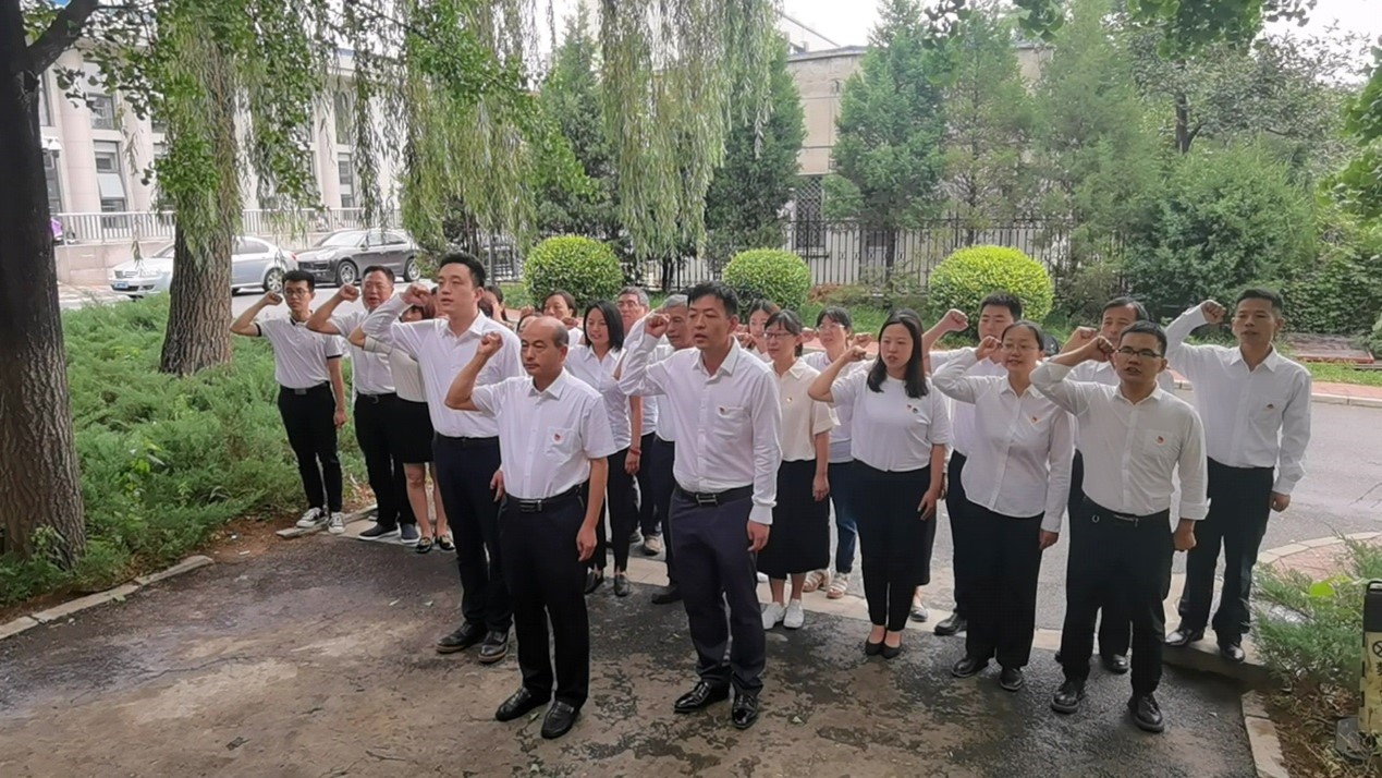 在陈幸良秘书长的带领下,在场人员郑重举起右拳,王乾宇、赵兴凯两名新党员宣读入党誓词,老党员重温入党誓词。“我志愿加入中国共产党,拥护党的纲领,遵守党的章程,履行党员义务……”一句句铿锵有力的誓词,一次次激发起宣誓同志在回望党的光辉历程中,奋进新征程的昂扬斗志。