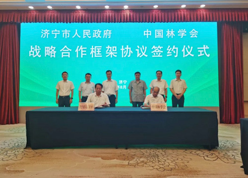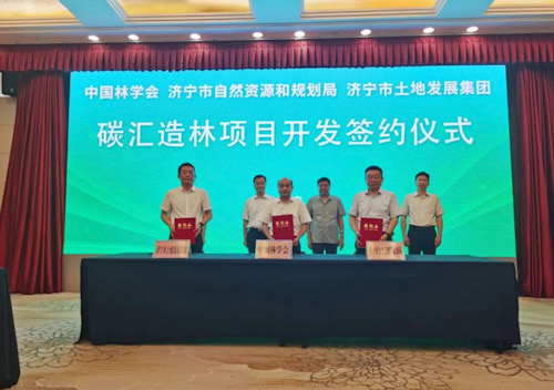 中国林学会与济宁自然资源和规划局、济宁土地发展集团签订碳汇造林项目开发合同