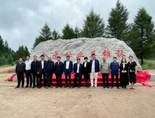 赵树丛理事长在揭幕仪式上为全国林业英雄林建设单位授牌,并与“林业英雄”孙健博、“林业英雄”马永顺之女马春华等共同为“林业英雄林”碑揭幕。