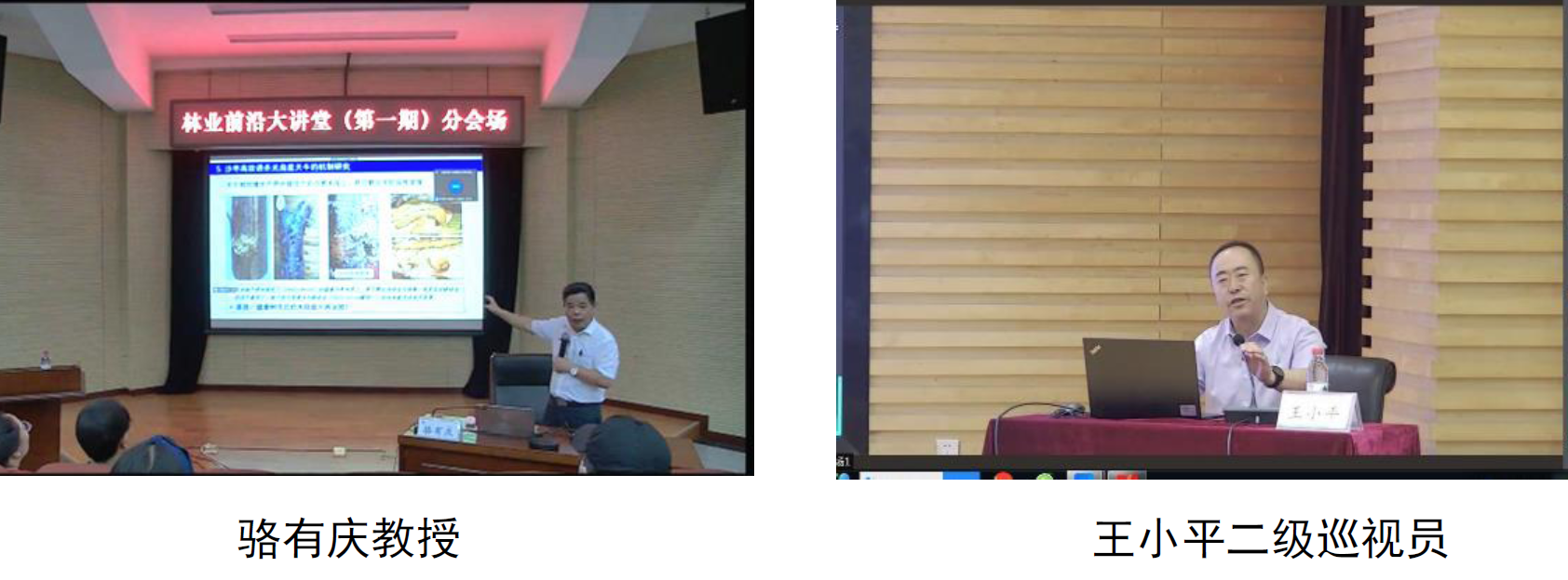 主旨报告后,各专场分别呈现了精彩的专题报告。王小平二级巡视员的报告介绍了北京市园林绿化的建设成就,提出了北京市园林绿化高质量发展的六条实现路径。骆有庆教授作研究报告中介绍,在新疆和甘肃地区沙枣分泌的树胶可消灭天牛卵,未来的研究有望通过探索利用此机制控制天牛灾害的发生。冯仲科教授的报告围绕智慧林业前沿,从模型研制、关键技术创新和典型应用等方面详细介绍了智慧林业的历史由来和发展现状,对智慧林业的重点领域和发展方向进行了展望。专题学术研讨过程中,《降低昼夜温差人工林生长及生产力响应》、《杨树人工林根际微生物功能菌群遗传效应》以及《林木体胚规模化繁育技术创新》等报告都展现了林学前沿的创新特色。