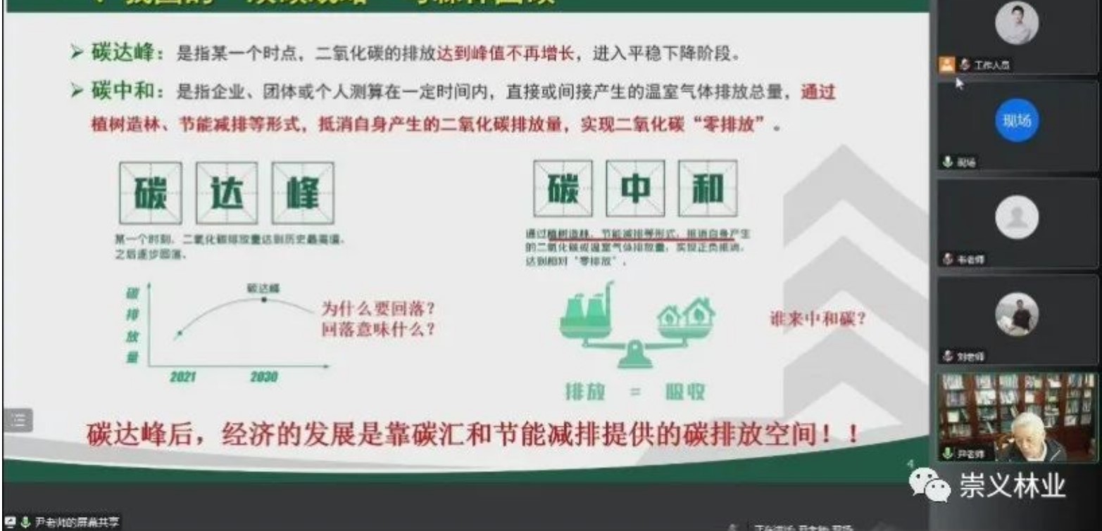 论坛开幕式结束后,中国工程院院士尹伟伦在线上作题为《森林碳汇功能、国内外碳贸易及对“双碳战略”的贡献》的报告,国家林业和草原局改革发展司一级巡视员杜纪山作题为《发展林业产业,助力乡村振兴》的主旨发言,同时邀请了中国林业科学研究院、南昌大学、福建省农业科学院、江西农业大学的有关专家,企业代表,共同探讨交流。