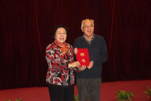 梁希奖评审委员会主任江泽慧教授向评审委员会成员颁发聘书