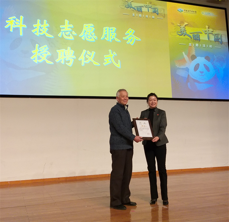 尹伟伦院士接受中国科技馆颁发的科技志愿服务聘书
