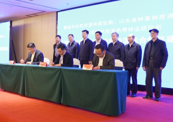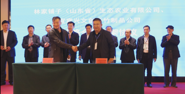 会上聊城市自然资源和规划局、山东省林草种质资源中心、中国林科院亚热带林业研究所签订了《“南竹北移”竹子种质资源库合作共建框架协议》。林家铺子与宜宾文创竹制品公司、中竹商贸集团有限公司分别签署战略合作框架协议。