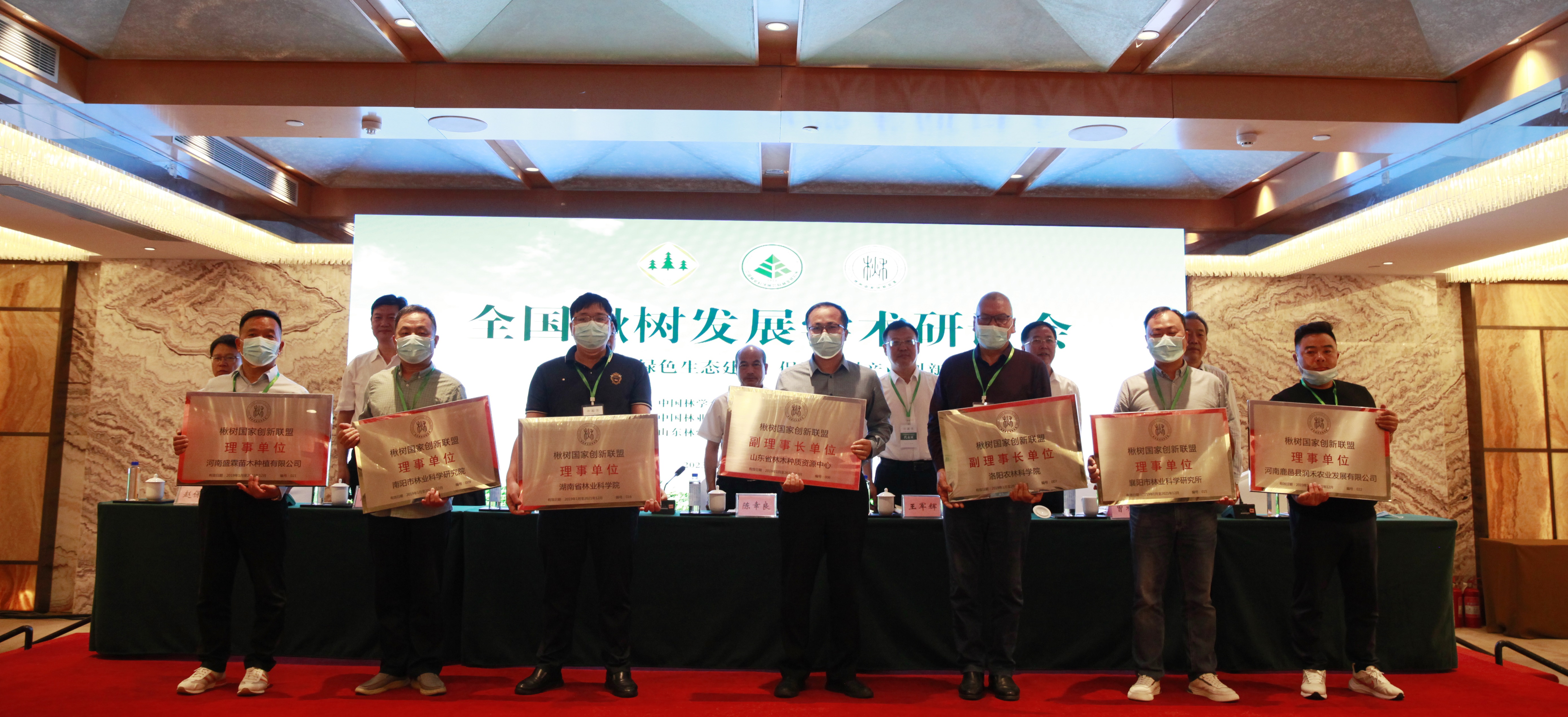 开幕式上,参会领导嘉宾为楸树国家创新联盟理事单位授牌。