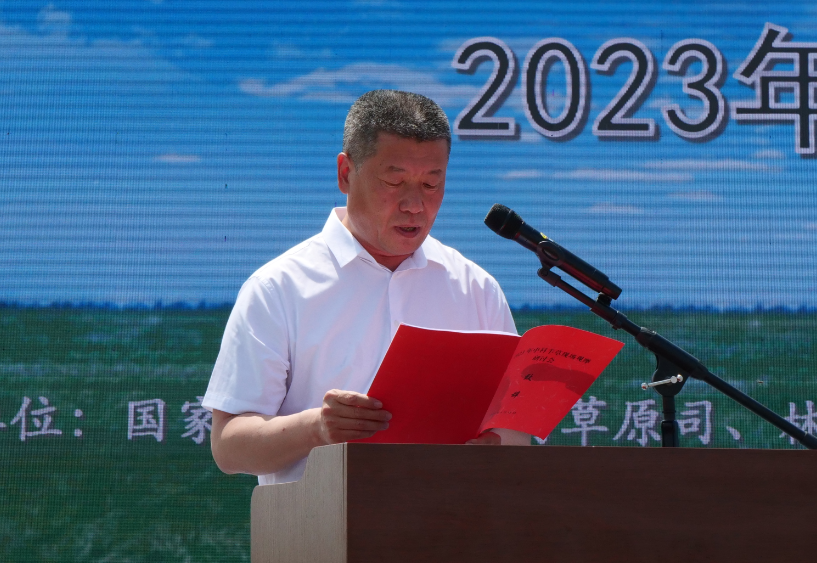6月13日现场观摩会开幕式上,国家林草局草原管理司二级巡视员杨智、中国科学院植物研究所副所长杨秀红、内蒙古自治区林草局副局长陈永泉、通辽市人民政府二级巡视员赵白玉、开鲁县委书记王凤森等领导嘉宾出席会议并致辞讲话。开幕式由国家林草局国有林场和种苗管理司二级巡视员欧国平主持。