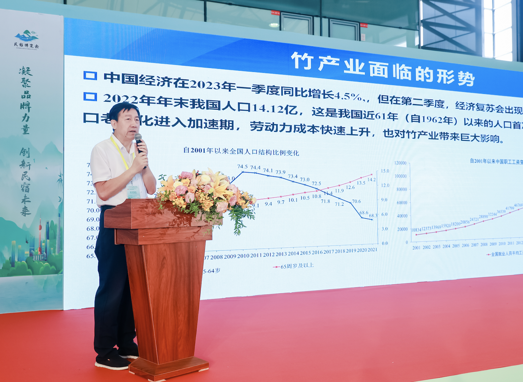 在开幕仪式上,中国林学会副理事长兼秘书长陈幸良发表讲话。陈幸良指出,竹产业是全球公认的绿色产业,拥有巨大的社会、经济、生态和文化价值,我国竹资源面积、种类和储量均居世界前列。2022年11月,我国政府同国际竹藤组织在第二届世界竹藤大会上共同发起“以竹代塑”倡议,是积极践行“绿水青山就是金山银山”绿色发展理念的重要体现。中国林学会历来高度重视竹子研究和竹产业发展,学会凝聚了一大批竹类专家和科技成果,致力于服务我国竹产业创新驱动发展和企业转型升级。下一步,中国林学会将继续发挥组织优势、人才优势、科技优势,聚焦我国“以竹代塑”产业发展新目标、新定位,强化科技攻关,完善生产标准,共同推动“以竹代塑”产业创新发展、特色发展、健康发展。