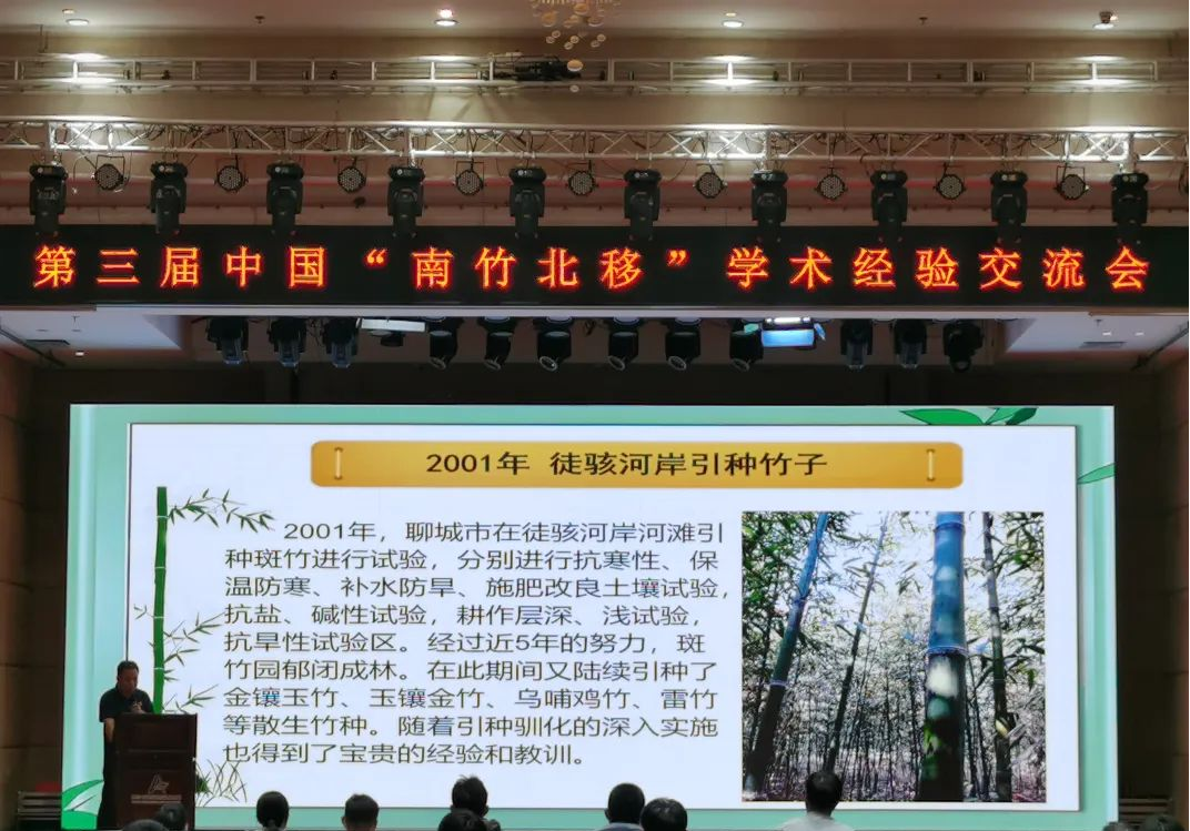中国林学会竹子分会理事长蓝晓光作了《为了那一抹绿》报告,国际竹藤中心研究员、中国林学会竹子分会副理事长范少辉作了《北方竹林的营造和管护技术要点》报告,浙江农林大学竹子研究院教授桂仁意作了《北方笋用林经营之我见》报告,中铁建竹缠绕发展有限公司董事长逄敏作了《竹缠绕产品的市场推广与前景分析》报告,北京中竹文化科技有限公司技术总监邵长专作了《现代竹工程技术在促进产业发展和乡村振兴的研究与实践》报告,山东农业大学教授曹帮华作了《北方竹子引种研究进展与发展思考》报告,陕西省楼观台国有生态实验林场高级工程师李作军作了《陕西延安地区耐寒竹栽培试验》报告,河南省博爱县林业发展服务中心高级工程师张玲作了《大别山、伏牛山野生竹类资源及在北方地区利用前景》报告,大禹竹种园总经理禹迎春作了《江苏省竹类新品种及林木良种概况》报告,聊城市林业发展中心主任郭喜军作了《聊城市南竹北移历程及前景展望》报告。