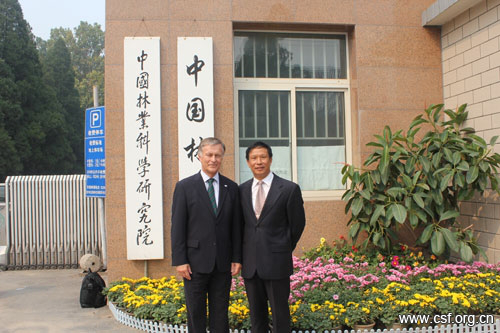 中国林学会副秘书长沈贵教授(右)与国际林联(IUFRO)主席尼尔斯.科克先生合影