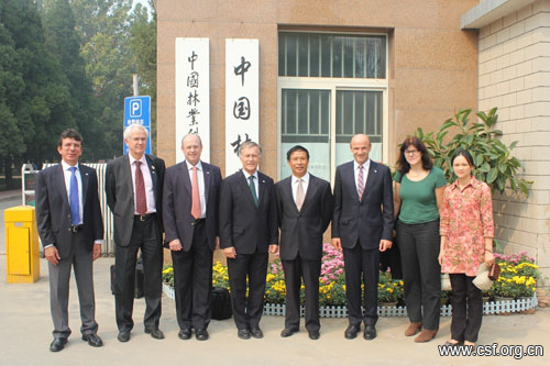9月27日, 中国林学会副秘书长沈贵教授在北京会见国际林联(IUFRO)主席尼尔斯.科克(Niels Elers Koch)先生等国际林联高级官员,双方在热情友好的气氛中回顾了中国林学会与国际林联多年的密切合作,并表达了今后进一步加强合作与交流的愿望。沈贵副秘书长向客人介绍了2012年第二届森林科学论坛—森林可持续经营国际学术研讨会筹备情况,期待得到国际林联进一步支持,尼尔斯.科克主席欣然应诺,参加会见的还有国际林联副主席迈克尔.温菲尔德(Michael Wingfield)先生、苏西伊.李(Su-See LEE)女士和秘书长亚历山大.巴克(Alexander Buck)先生。
