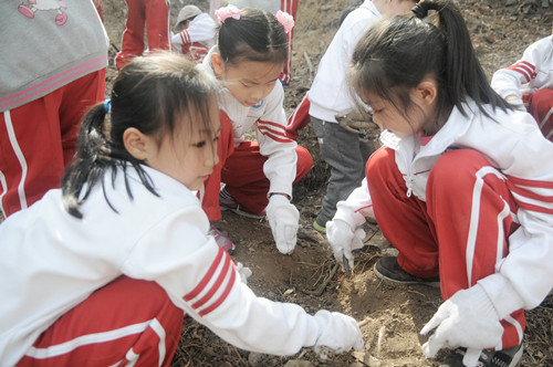接下来,播种花籽、浇水、清杂、收集自然物制作手工等活动孩子们始终饶有兴致地一一完成,半天的活动就即将结束了。孩子们和家长都感到意犹未尽,他们像小鸟一样唧唧喳喳地说出自己快乐的感受:“我是绿叶,今天我觉得很有趣,种树很有趣。”“我是葵花子,我今天看到很多好看的植物,知道怎么给小树喝水。”作为家长,张乐扬的父亲张晨明也高兴地表示:“今天孩子收获很大,以前只知道松树,现在都认识油松了。很喜欢今天的活动,种下的小树和花草以后要常带孩子来看看,培培土浇浇水。”(中国绿色时报记者 尹萍)