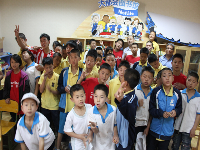 与孩子们合影