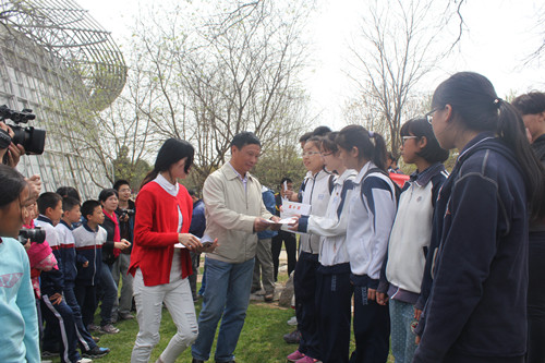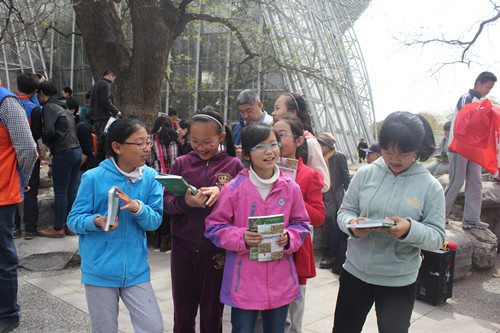 4月19日,随着中国林学会副秘书长沈贵的一声口令,来自西城区14所中小学校的200余名学生不慌不忙地“打卡”、争先恐后地出发,3人一队,很快消失在北京植物园的繁花绿树之中……