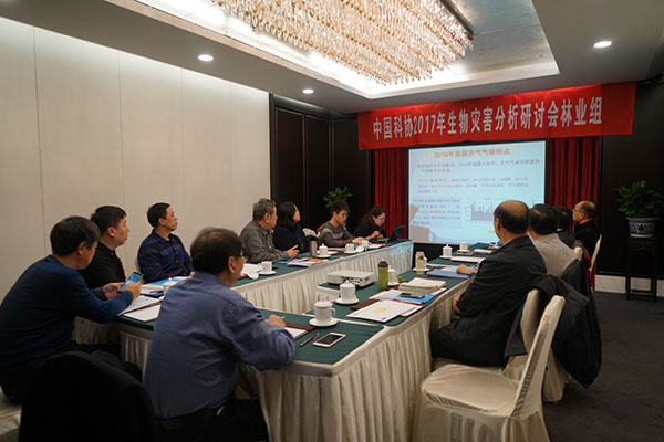 与会专家分林业组、作物组、畜牧组、水产组对2016年我国生物灾害发生、防治情况及发生原因进行了总结与分析。林业组专家们一致认为2016年我国林业生物灾害偏重发生。一是重大林业入侵生物扩散蔓延严重,二是林木病害流行偏重,三是经济林病虫发生持续加重,四是常发性有害生物整体危害减轻但局部成灾。专家们根据主要林业有害生物林间基数和发生规律、气候条件、森林健康状况以及监测新手段和预测新方法的应用等作为预测依据对2017年我国主要林业生物灾害发生趋势作了分析并提出了防控对策建议。