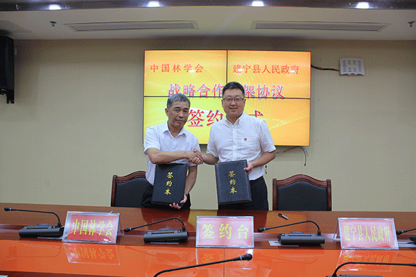 刘合胜副秘书长与王楠副县长分别代表中国林学会和建宁县政府签署战略合作框架协议