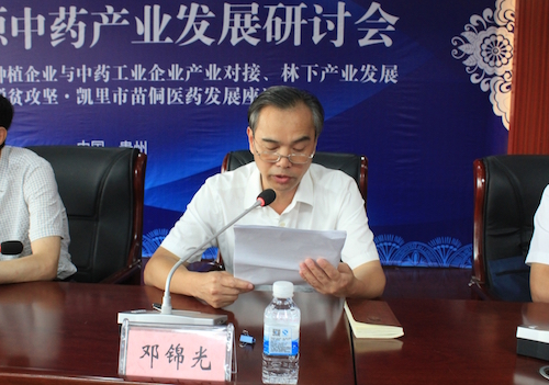 黔东南州政协副主席邓锦光对各位代表的到来表示欢迎,并介绍了近年来黔东南州林业及林源中药产业发展情况。贵州省林业厅总工程师聂朝俊在致辞中介绍了贵州省林源中药产业现状、发展规划、存在问题及相应的对策。